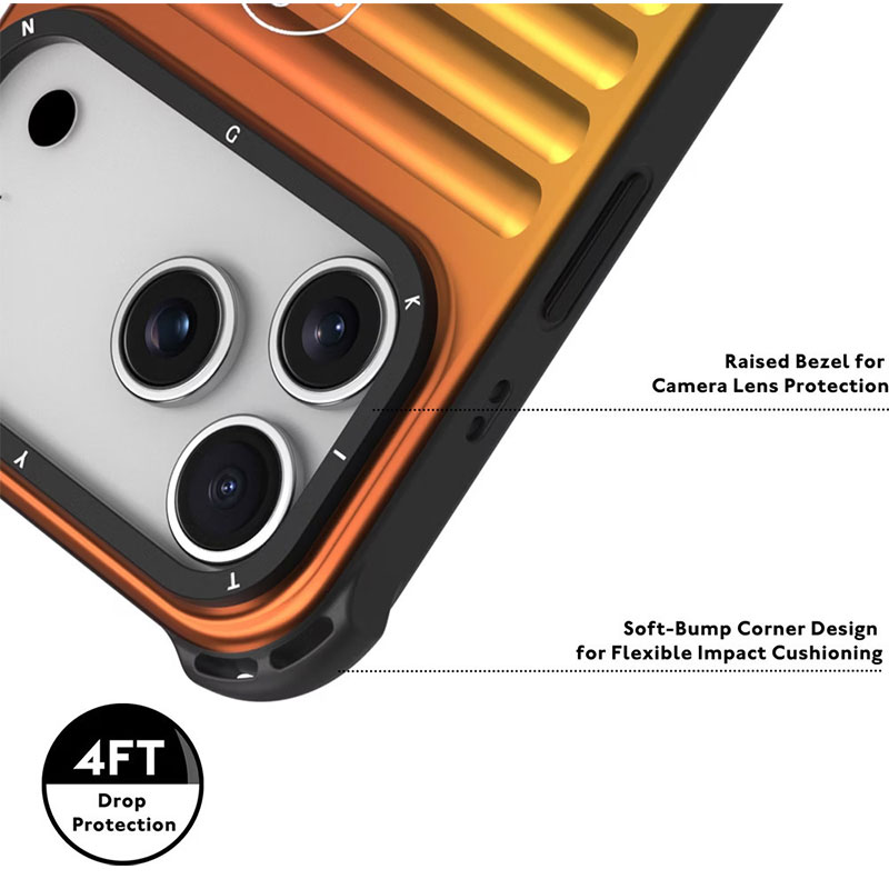 طراحی گرادیانت سکرت کالر باعث میشود در زوایای مختلف نور، قاب جلوهای متفاوت و خاص به خود بگیرد؛ فرمی درخشان بدون زیادهروی، دقیقاً همان ترکیب ظرافت و قدرتی که از برند یانگکیت (Youngkit) انتظار داریم. دکمهها و فریم لنز دوربین با رنگ مشکی مات ساخته شدهاند تا تضاد بصری خیرهکنندهای با سطح قاب ایجاد کنند.
